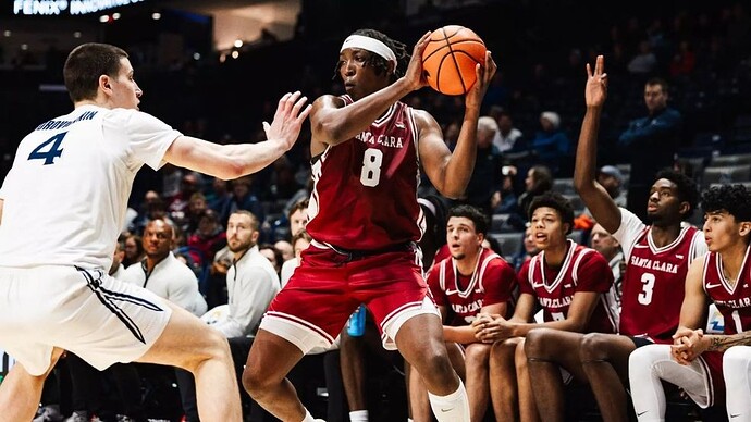 Steve Alford is still at UNR, having kept the Wolf Pack (not to be confused with the compound Wolfpack of NC State) relevant in the Mountain West after Musselman put them back on the map basketball-wise. Nevada went to the NCAA Tournament in 2023 and 2024. Last year’s team seemed bound for the same if you only watched their 85-59 domination of SCU in Reno–and it wasn’t even that close. But last year’s Wolf Pack was really just a good mid-major, finishing 7th in the Mountain West. And the players who made that squad tick–Kobe Sanders and Nick Davidson–are now suiting up for new teams: the LA Clippers and Clemson Tigers, respectively. This new UNR team is undefeated but has yet to really impress, winning by only a single point at home against the WCC’s own UOP Tigers, for example. But here are the last four scores between Santa Clara and Nevada: 59-85, 96-74, 67-98, and 93-63. No game in the Sendek era has been decided by fewer than 20 points, and UNR’s three wins are by an average of 29 points.